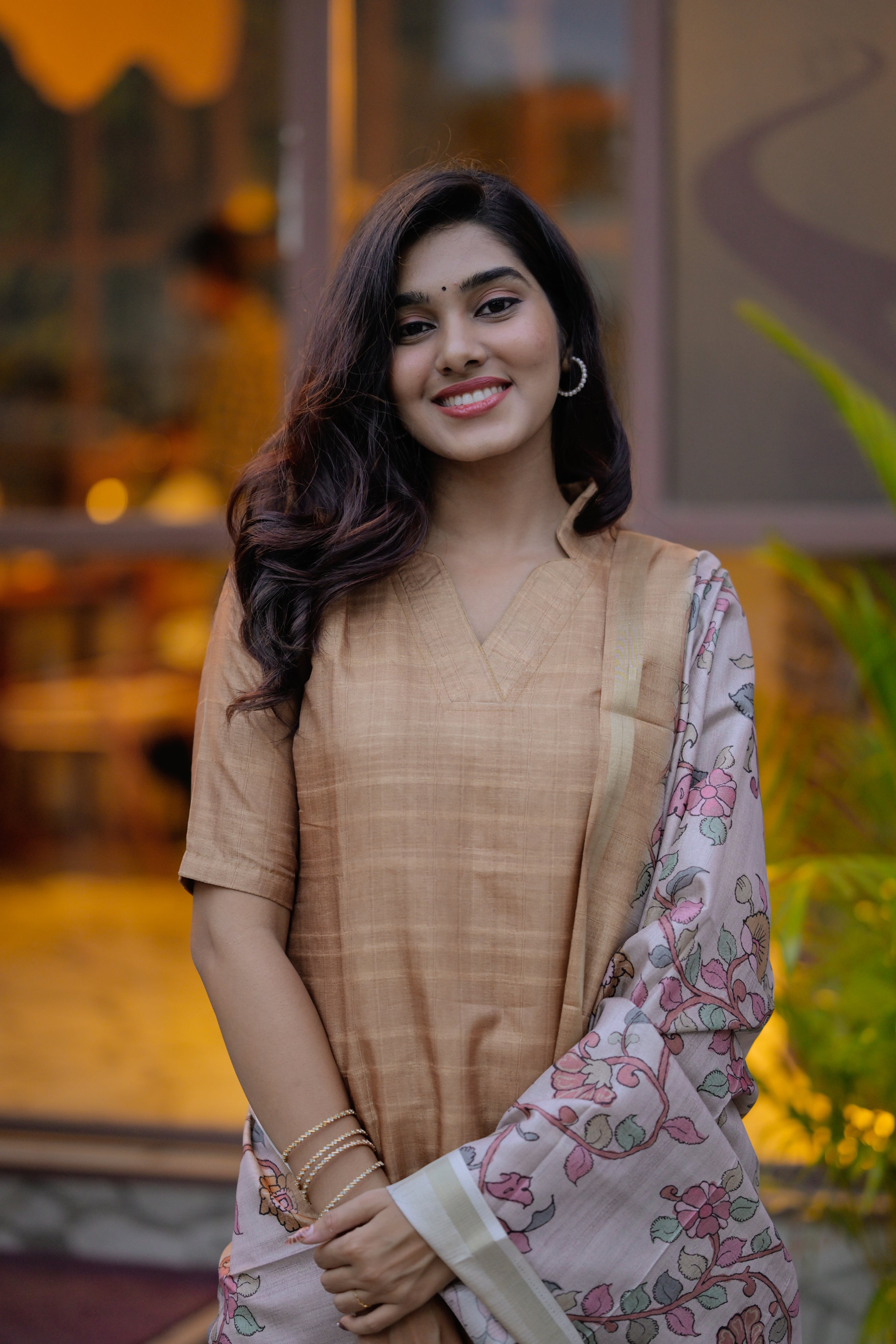 • Dupatta Design: pen kalamkari tussar silk dupatta