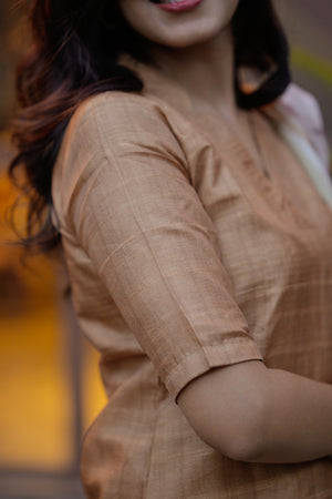 Vrinda ( yellow ) - pure tussar silk kurta with pen kalamkari tussar dupatta in mustard yellow
