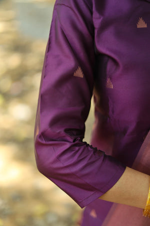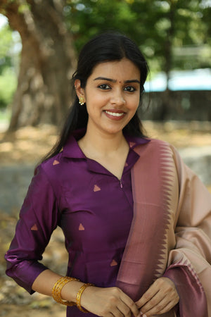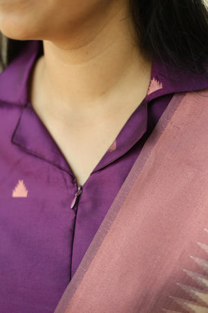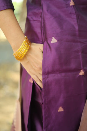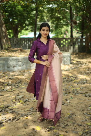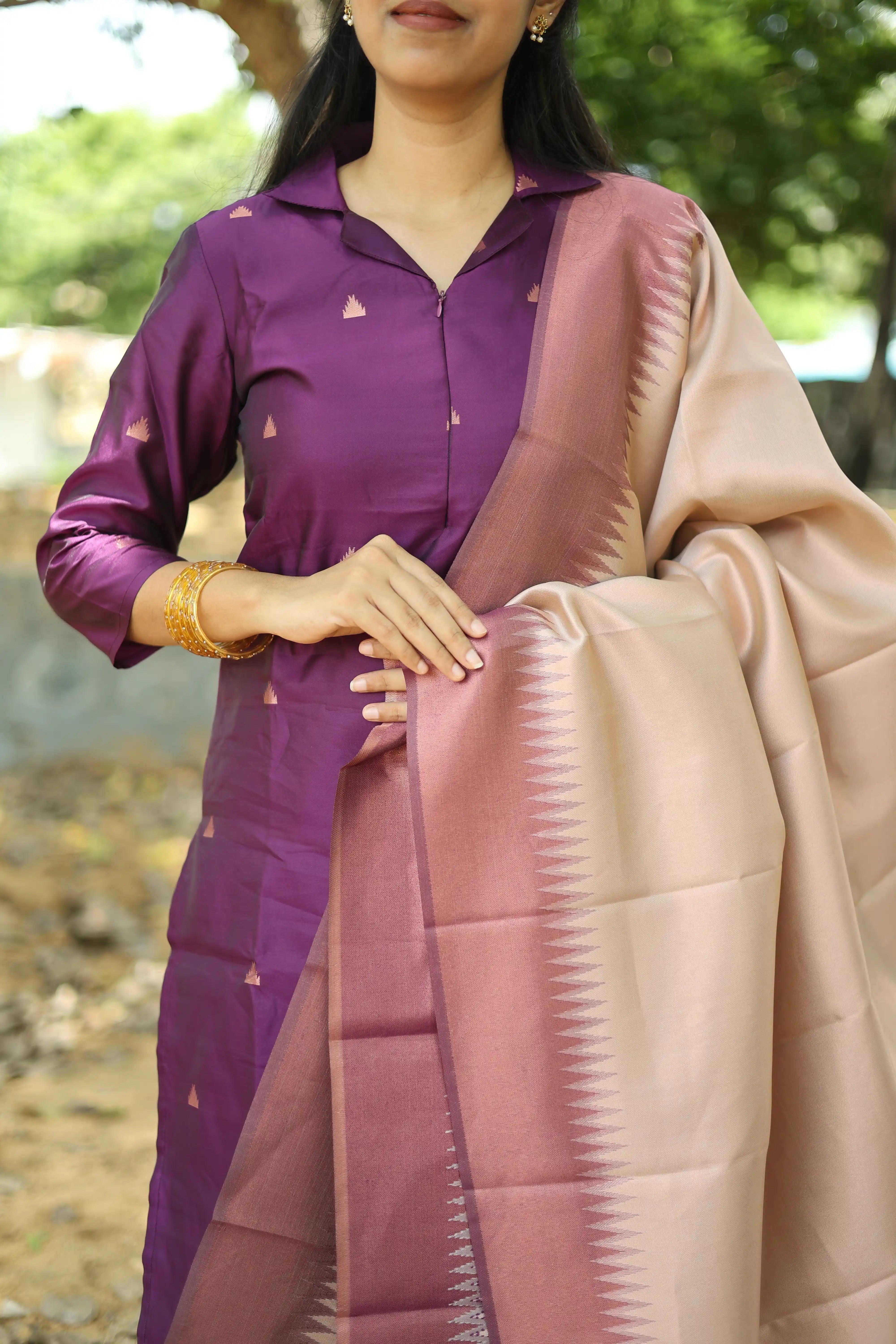 Vruksha Amethyst Bloom - purple vegan silk suit set with beige dupatta with temple border