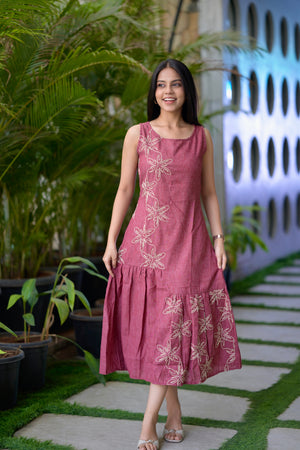 Crafted from premium pure linen cotton, this elegant wine-coloured dress is designed to offer both comfort and effortless sophistication. The breathable natural fabric gives it a soft, lightweight feel, making it ideal for all-day wear.