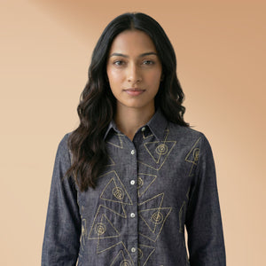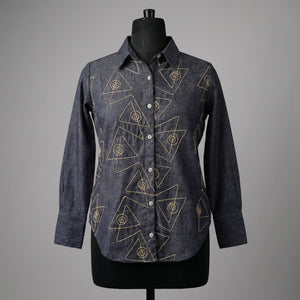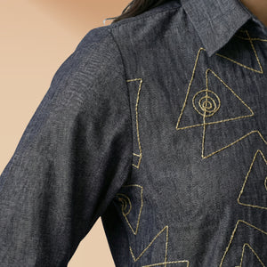 Women Linen shirt 2 - linen cotton shirt denim blue colour with hand embroidery