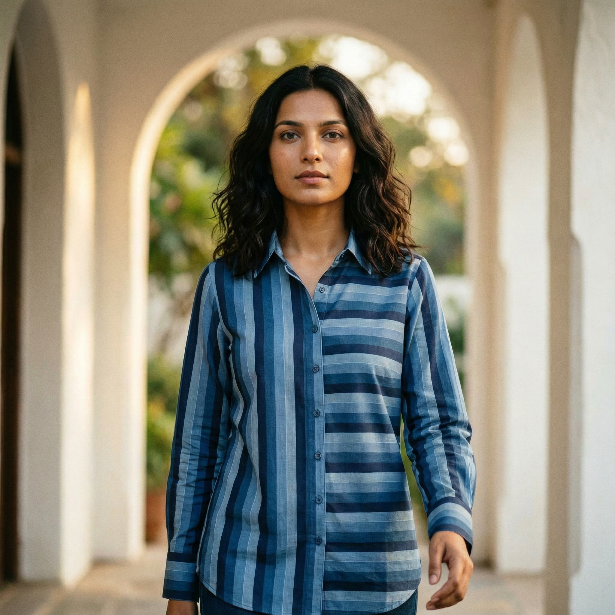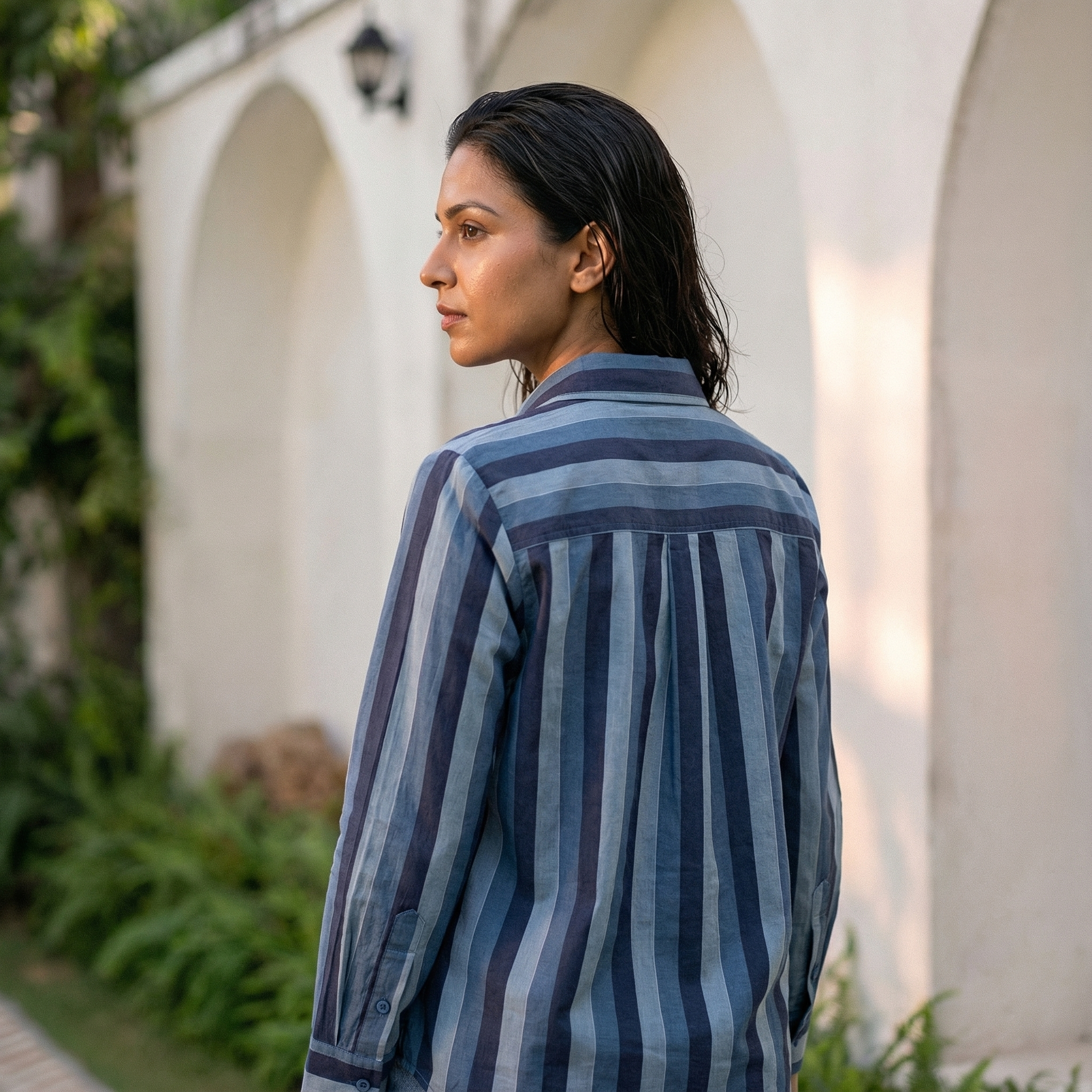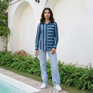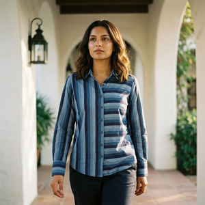 Women's shirt 1 - promenade striped cotton shirt in shades of blue