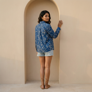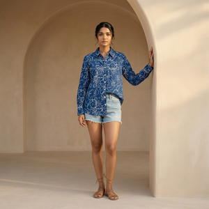Women's shirt 11 -abstract printed organic cotton shirt in dark blue