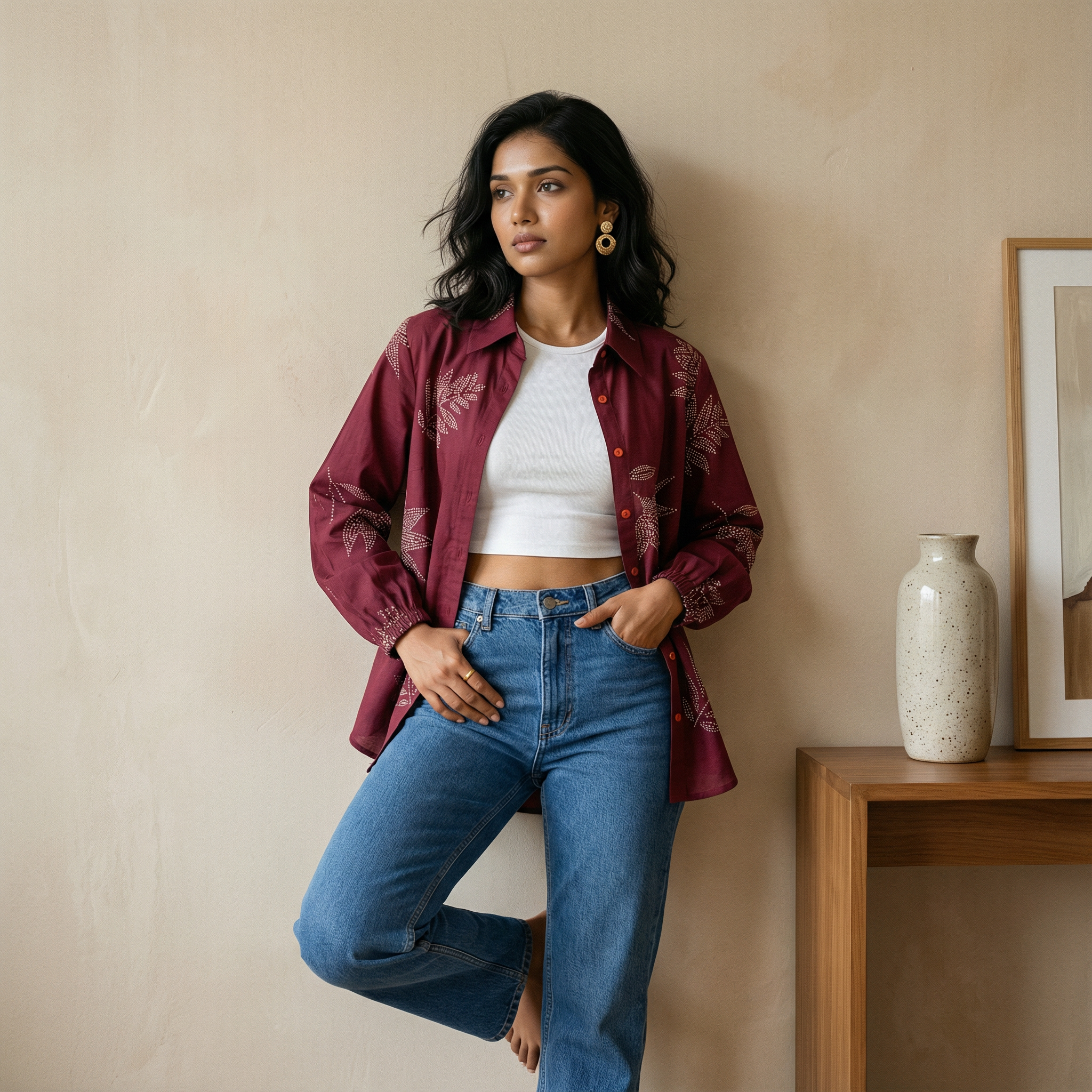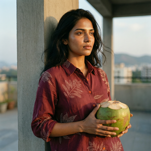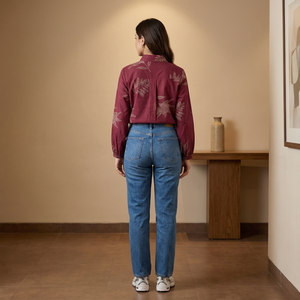 Women's shirt 17- Floral printed organic cotton shirt in maroon