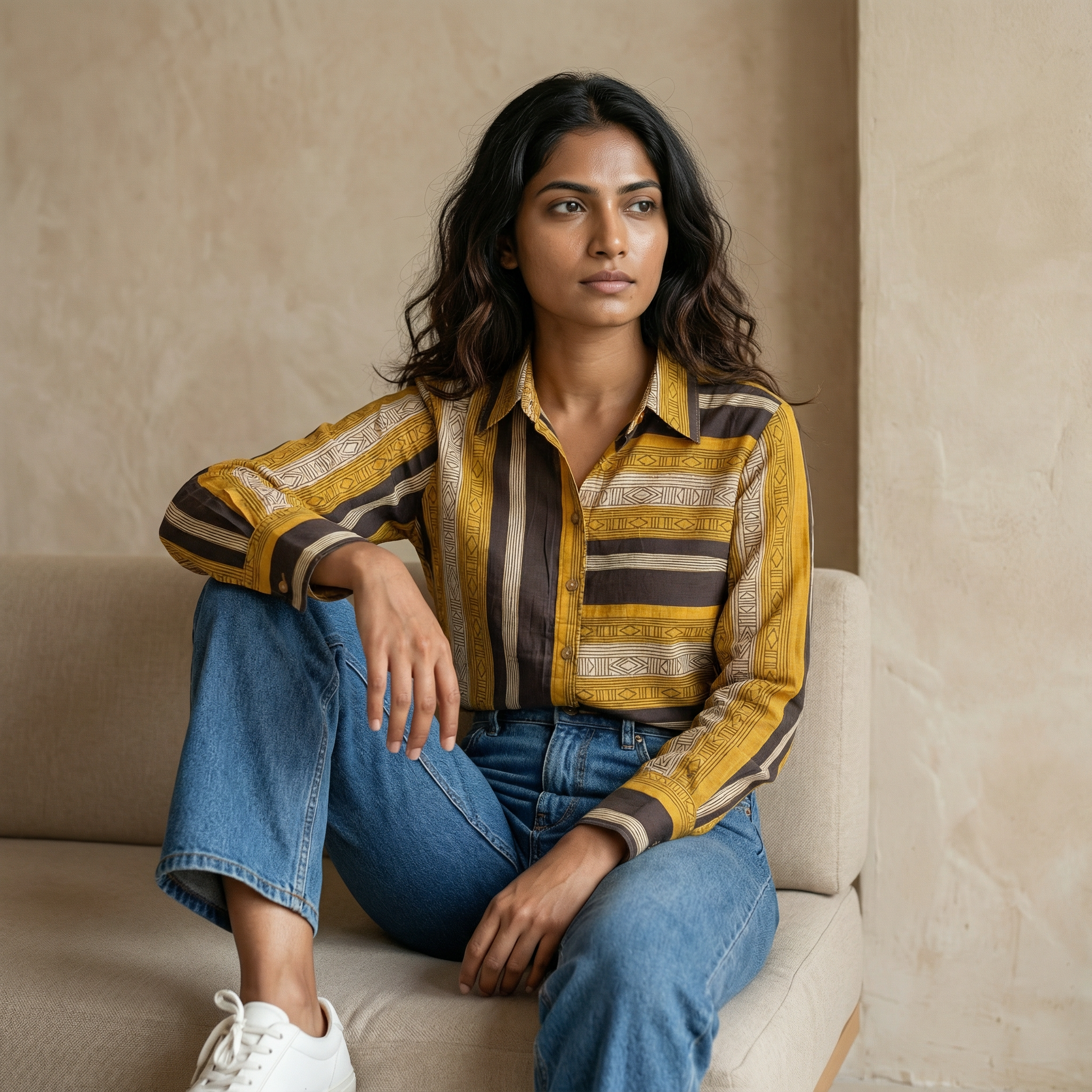 Meet the shirt that effortlessly blends quirky charm, everyday comfort, and smart style — all crafted in 100% pure organic cotton. Designed for women who love expressing personality through their wardrobe, this piece features unique, playful prints that add just the right amount of sass to any outfit.