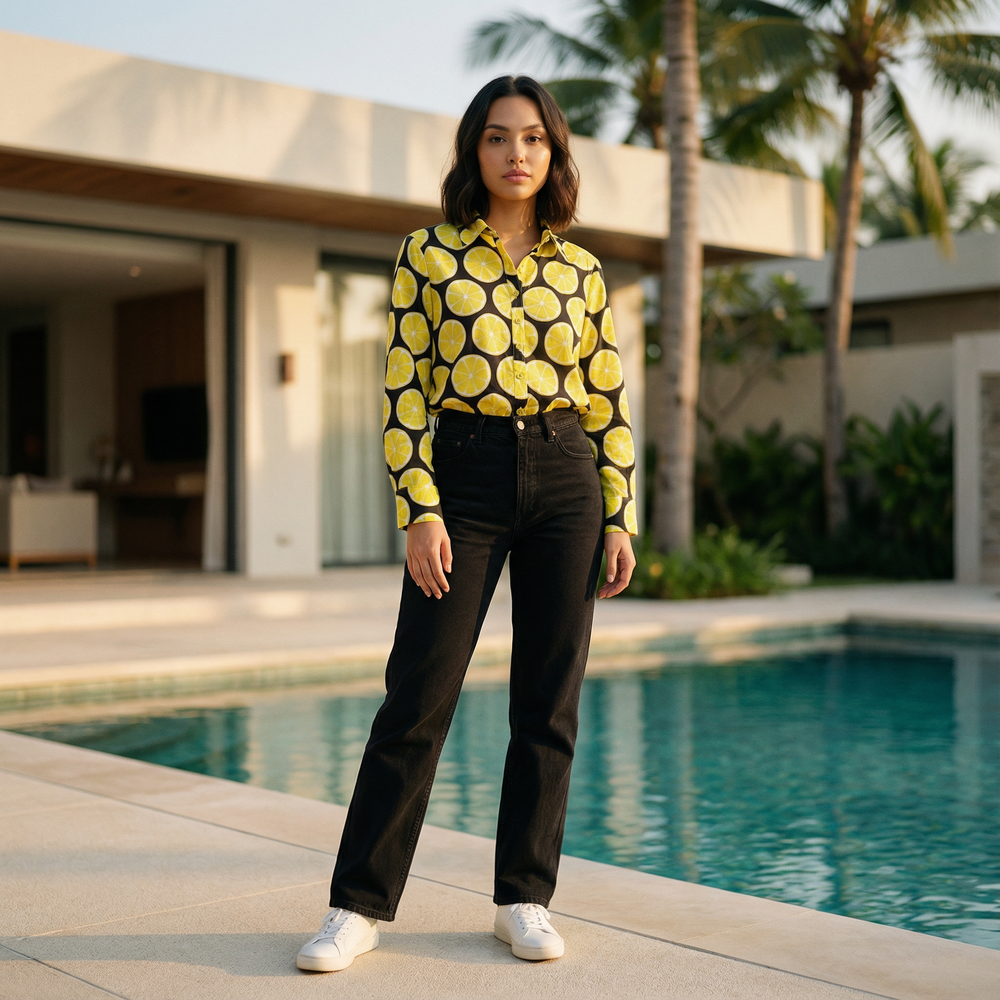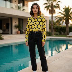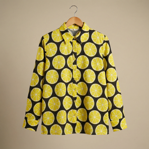 Women's shirt 2 - lemon printed cotton shirt in black and yellow