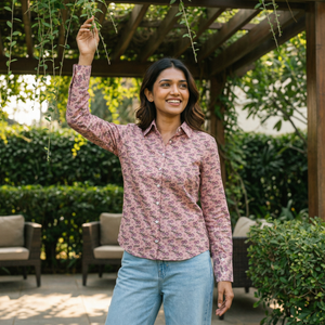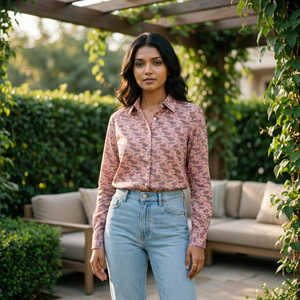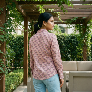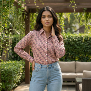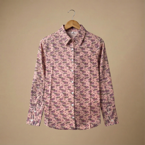 Women's shirt 22- Floral printed organic cotton shirt in pink