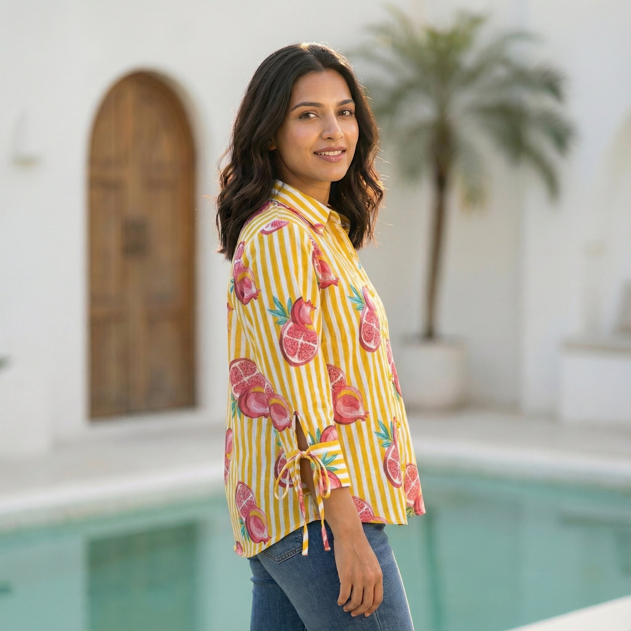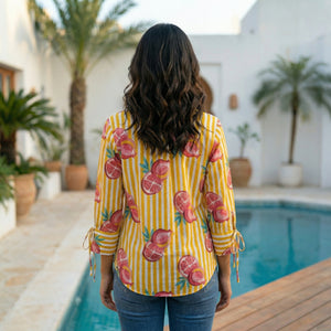 Women's shirt 30- Citrus zest printed organic cotton shirt in yellow and white
