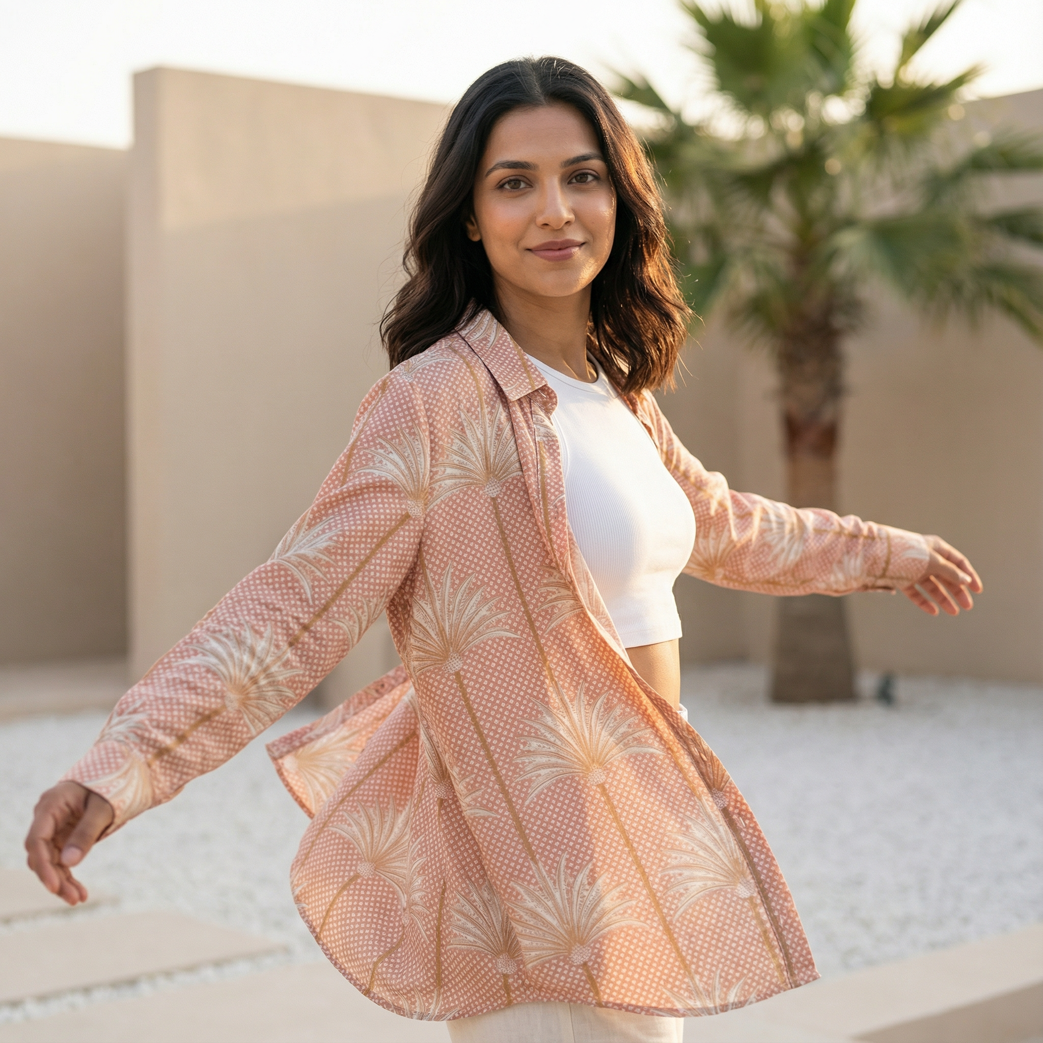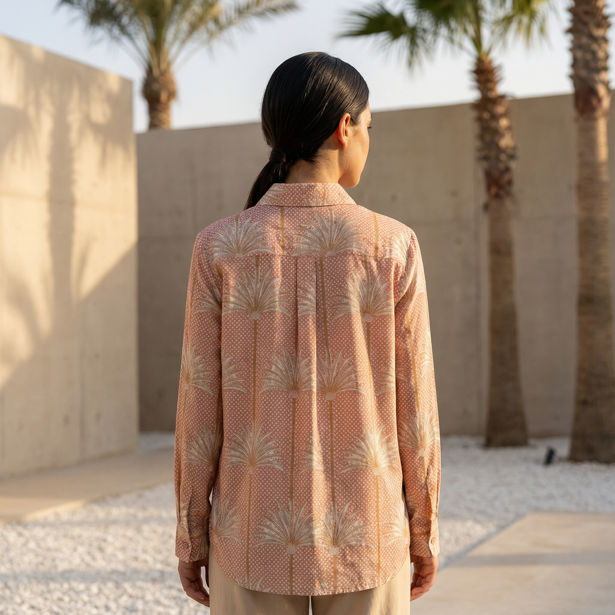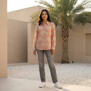 Women's shirt 4 -quirky printed travel organic cotton shirt in peach