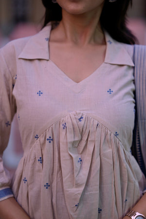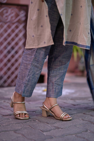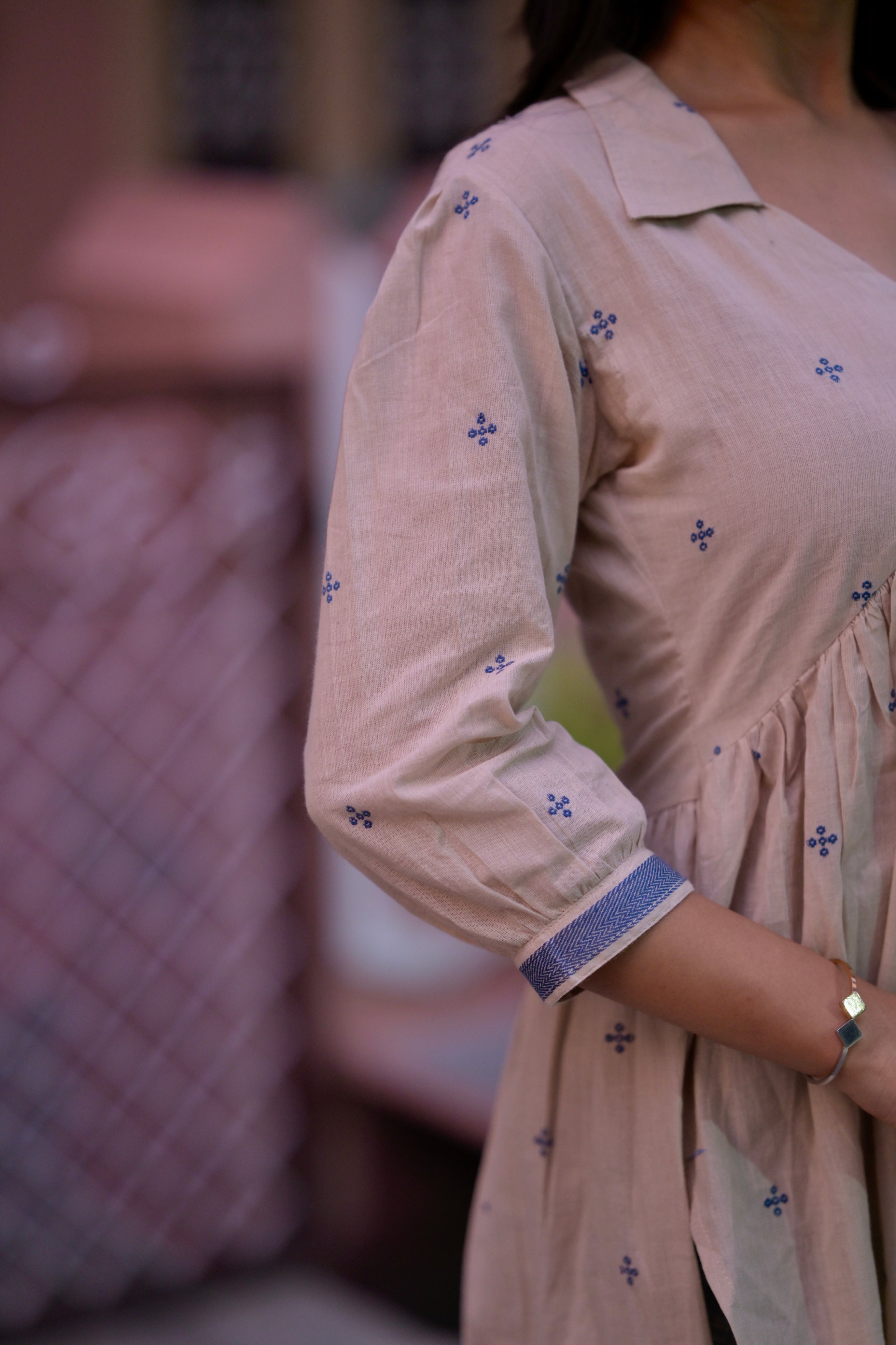 Yashasvi ( blue) - handloom linen cotton suit set in cream and blue