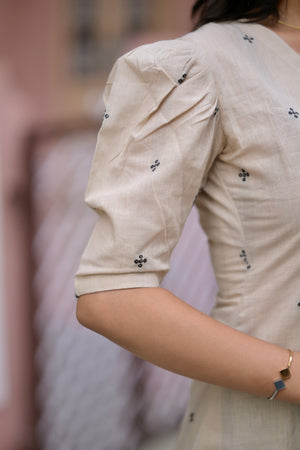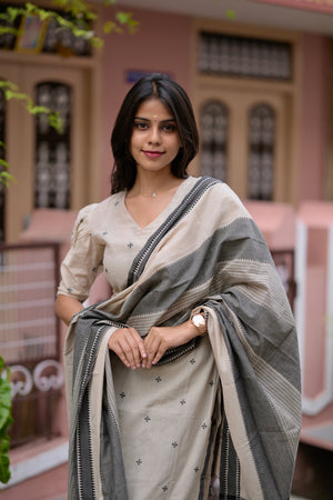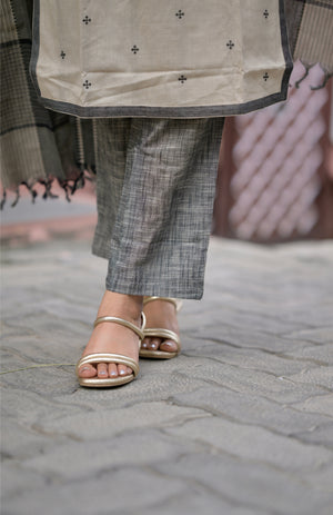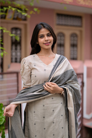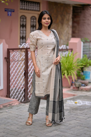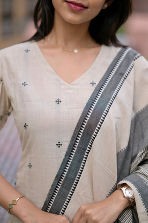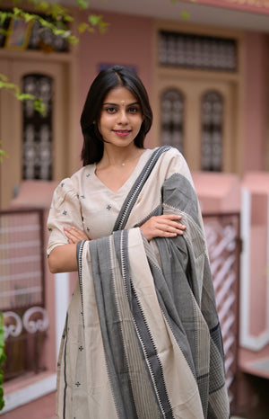 Yashasvi ( elephant grey) - handloom linen cotton suit set in cream and grey